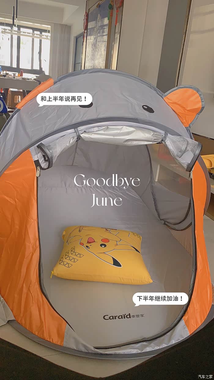 随便客厅一放,我们就开启了露营之旅。配合同样的Vlife皮卡丘靠枕在帐篷里睡觉真是绝配。