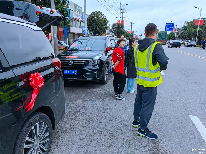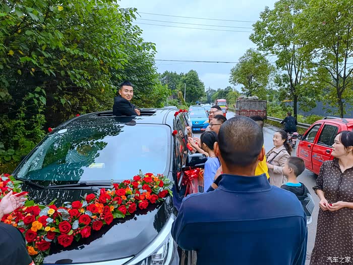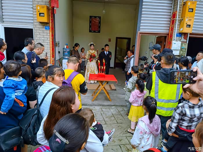 早上,迎亲车队早早排在恒泰大酒店的外面,待新郎迎接新娘上到喜车上后,车队浩浩荡荡前往新郎家。到达新郎家的“堂屋”,主持人按照当地的习俗一一展开,拜堂入洞房流程之后,主家招呼迎亲、送亲相关人员吃汤圆,寓意着新人大吉大利,团团圆圆。