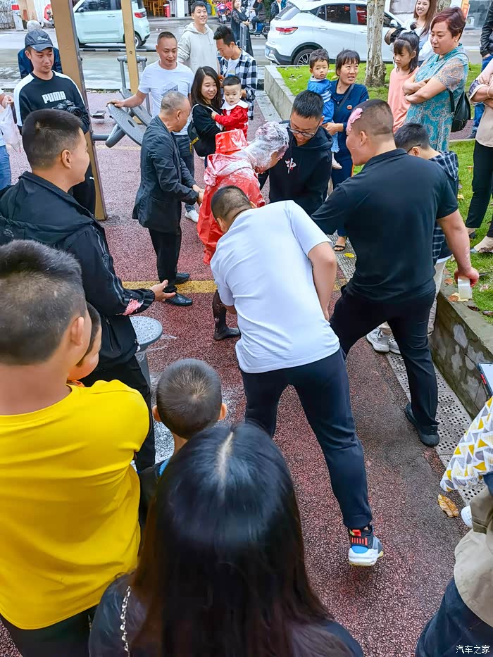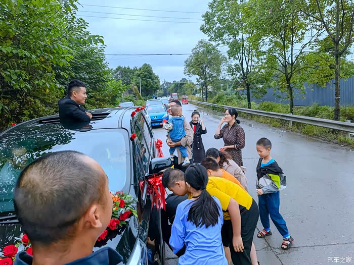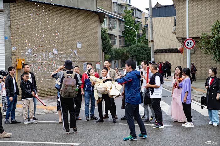 新郎抱起新娘登上喜车,一路被参加婚礼的同龄嘉宾“戏闹”取乐,车队沿小路而行,说是回来走大路,从而不走回头路。一路上“拦红”抢红包,快要到达酒店时更是将新郎“抢”去“修理”了一番,搞得新郎不伦不类。看着有些过头,但他们说,这还不算什么,还有更厉害的。也是啊!结婚大事,整点标新立异的花样,会长长久久的记得。