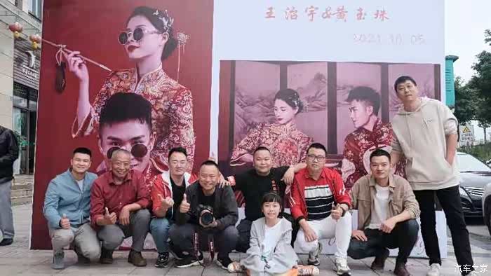 到达崇州拉菲君祥酒楼,婚宴间隙,热闹的现场,喜庆的气氛,来自四川祺滨团的部分车友,以新郎新娘婚礼展板为背景墙,拍照留念。一来沾沾新娘官和新娘是喜气,二来为他们百年好合见证!