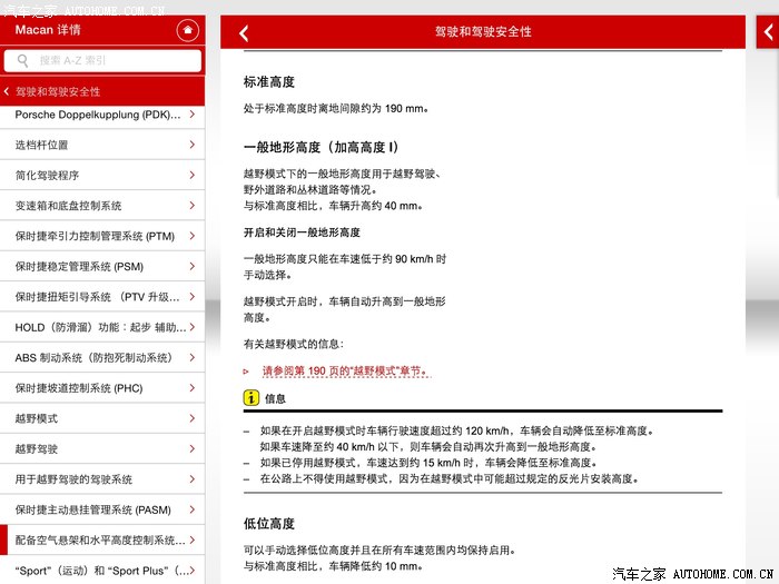 这个介绍是针对装配了空气悬架的,缺省190mm,低位180mm,高位230mm,适用范围很大呀