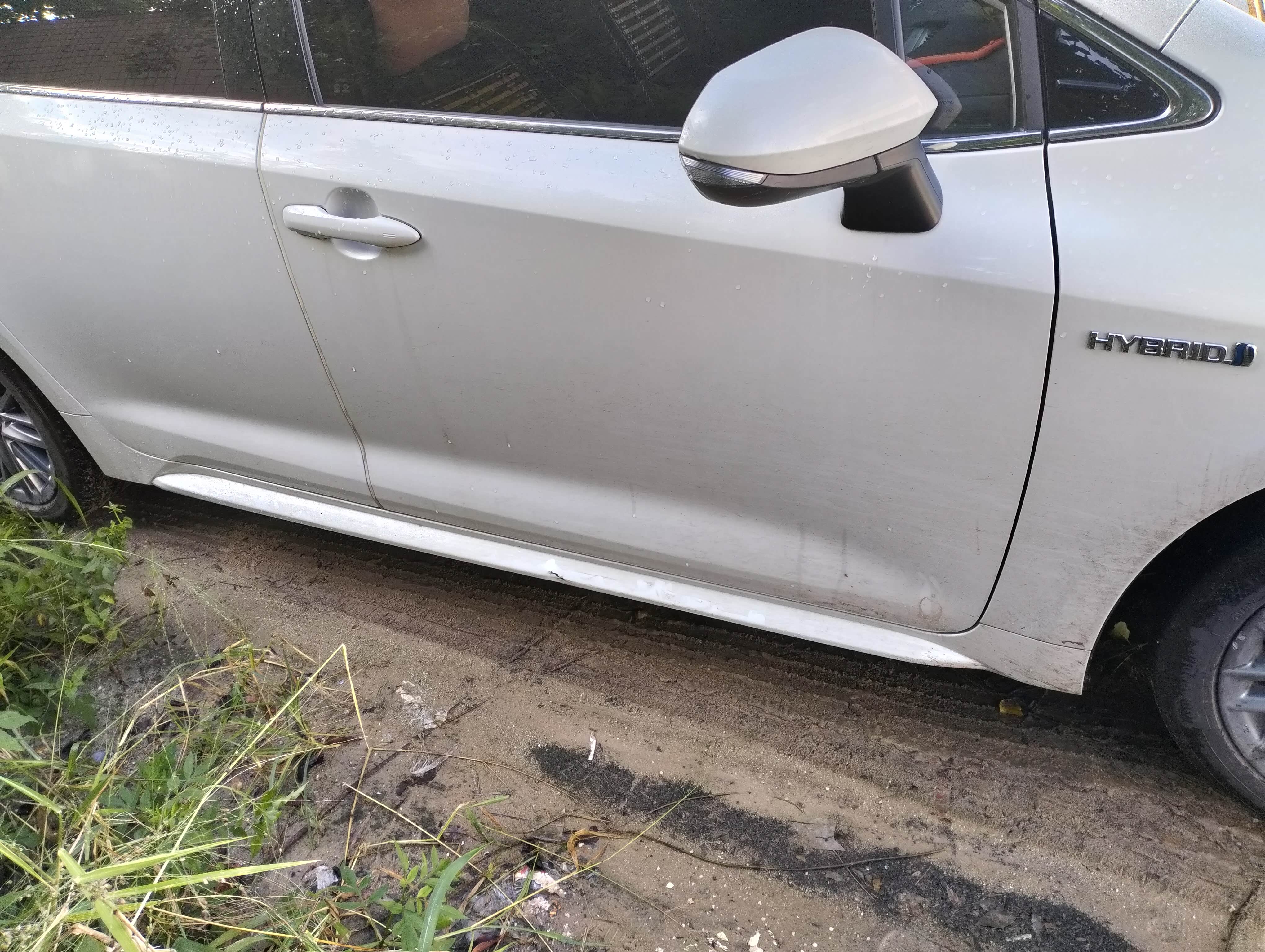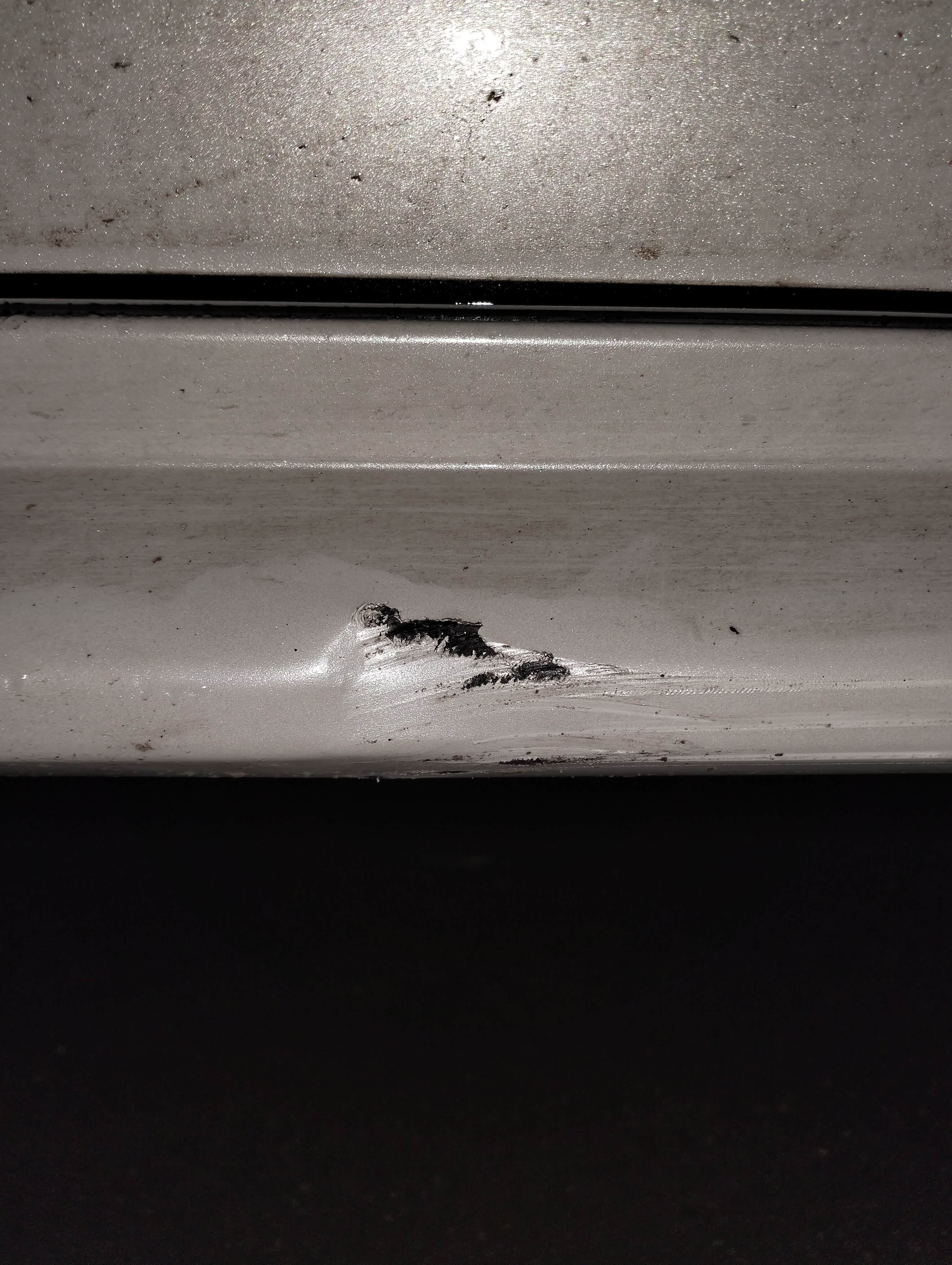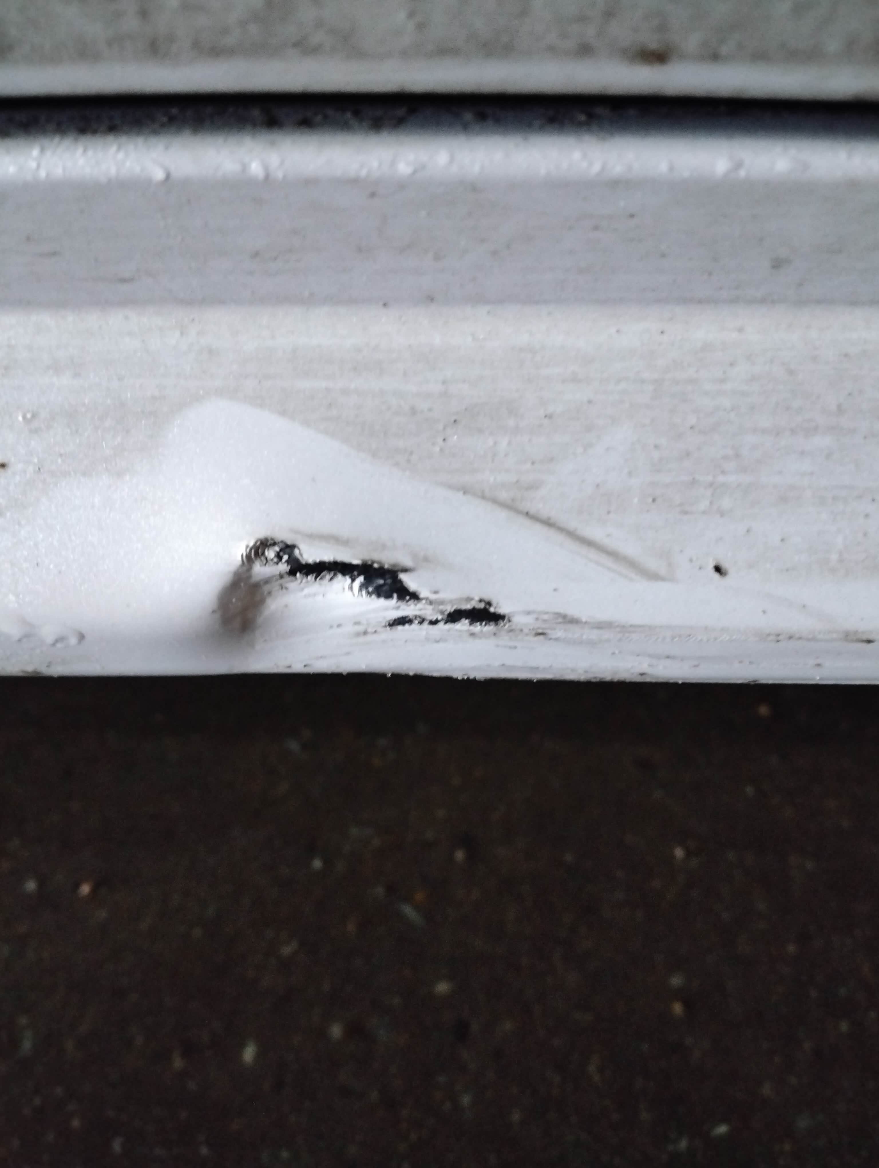 下大雨转弯没注意到,被突出的顶了一下,,这地方是胶的还是五金的,能不能修复。