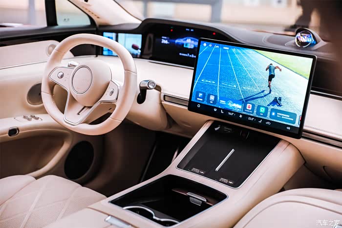 整个座舱遵循中正对称的设计结构,通过智能星环设计,将未来科技与奢华风格完美融合,打造高质感的智享座舱。