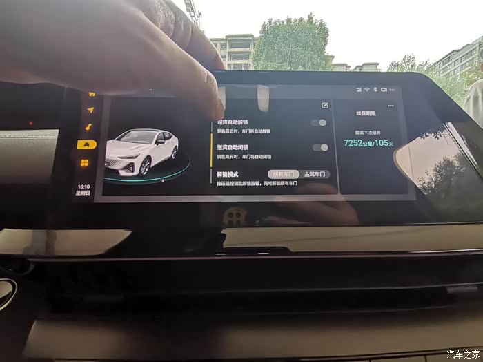 10.3英寸的中控彩色大屏,显示很清晰,它的高智能让我不再手忙脚乱,可以很机智的进行人车对话,开车时需要听歌、切换目的地等,只需要语音唤醒就可以了。