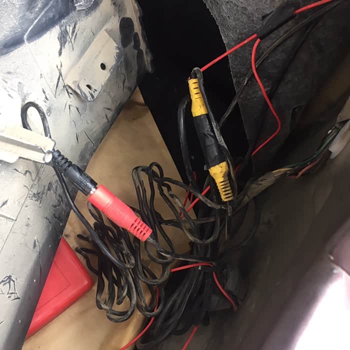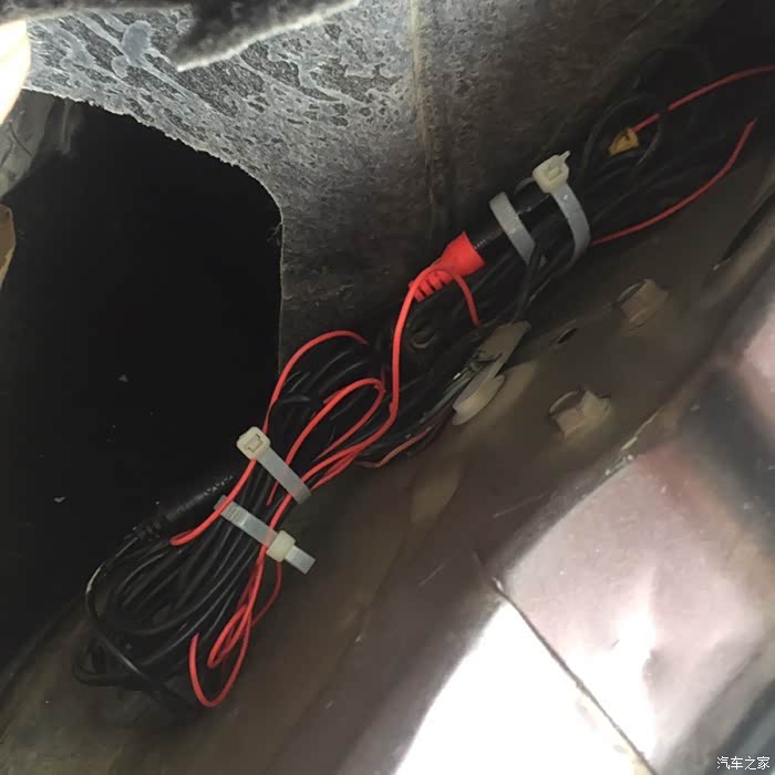 后尾箱那个塑料翘开 把塑料板拿开里面就有好多线 这个红的和黄的就是倒车摄像头