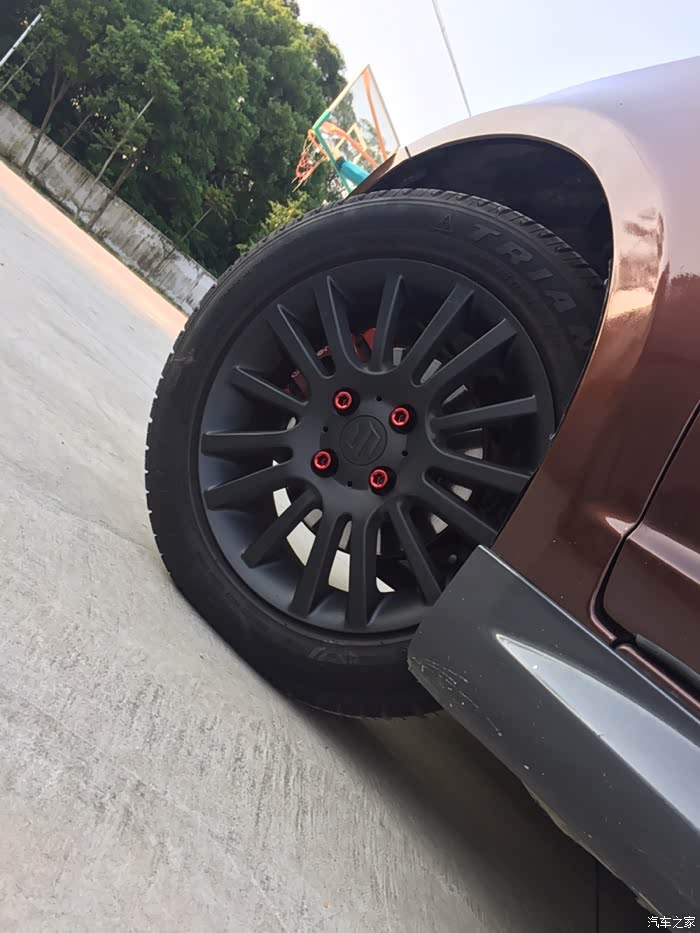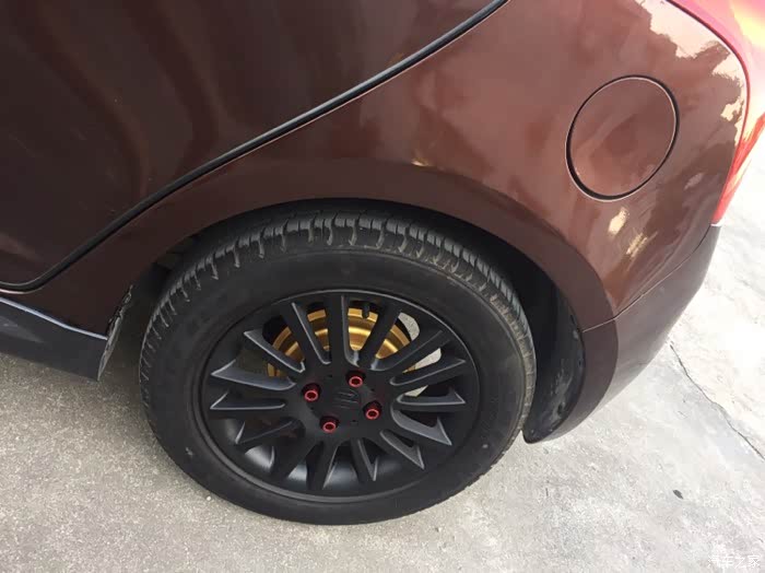 效果图 轮毂喷了可撕膜亮黑色 加上红内六角螺丝 好看多了