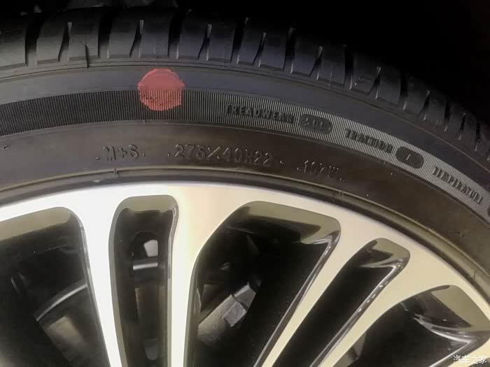 总统版配备了275/40R22的轮毂,这一点再解释下,说明轮胎宽度为275毫米,轮胎侧面高度为轮胎宽度的40%,轮毂的直径为22英寸。好在轮胎比较宽,40比的轮胎看上去不是太薄。
