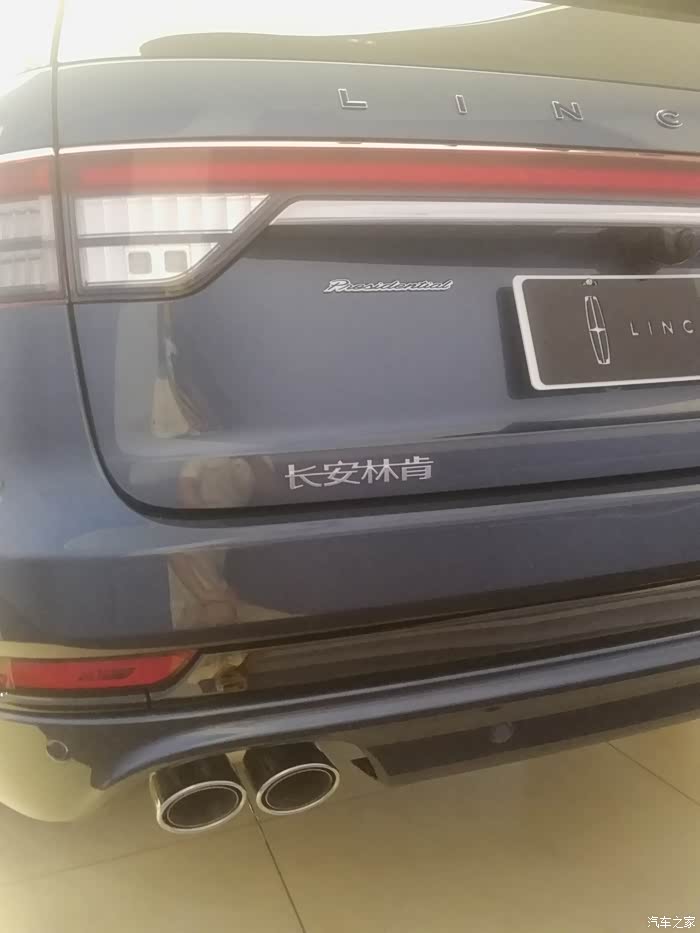 长安林肯的尾标以及总统版本的标识。排气方面采用了跟这个级别搭配完美的双边双出造型,而且尺寸比较显眼。
