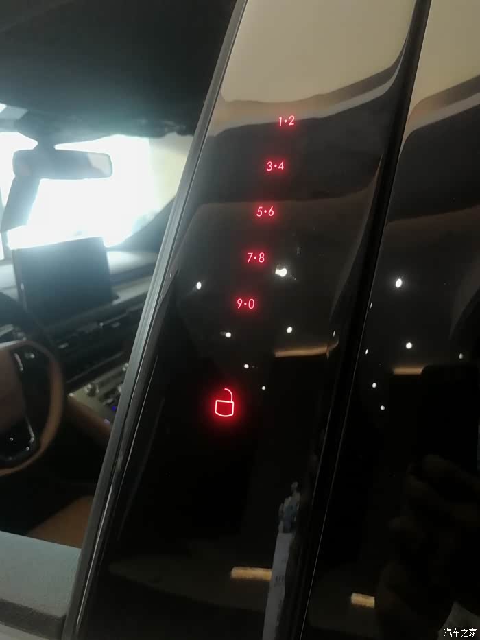 最后描述一下林肯又一标志性设计,车门密码锁,这一点也很实用,比如你去打球或者短暂时间不想带钥匙,可以把钥匙和东西锁在车内。