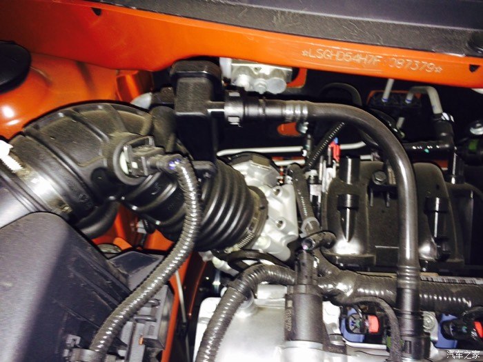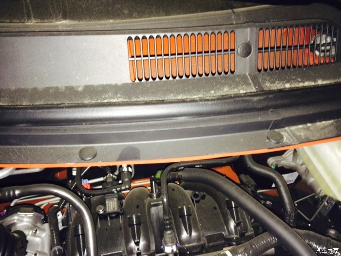 进气口,有没有跑车的感觉?只是躲在引擎盖里面,呵呵