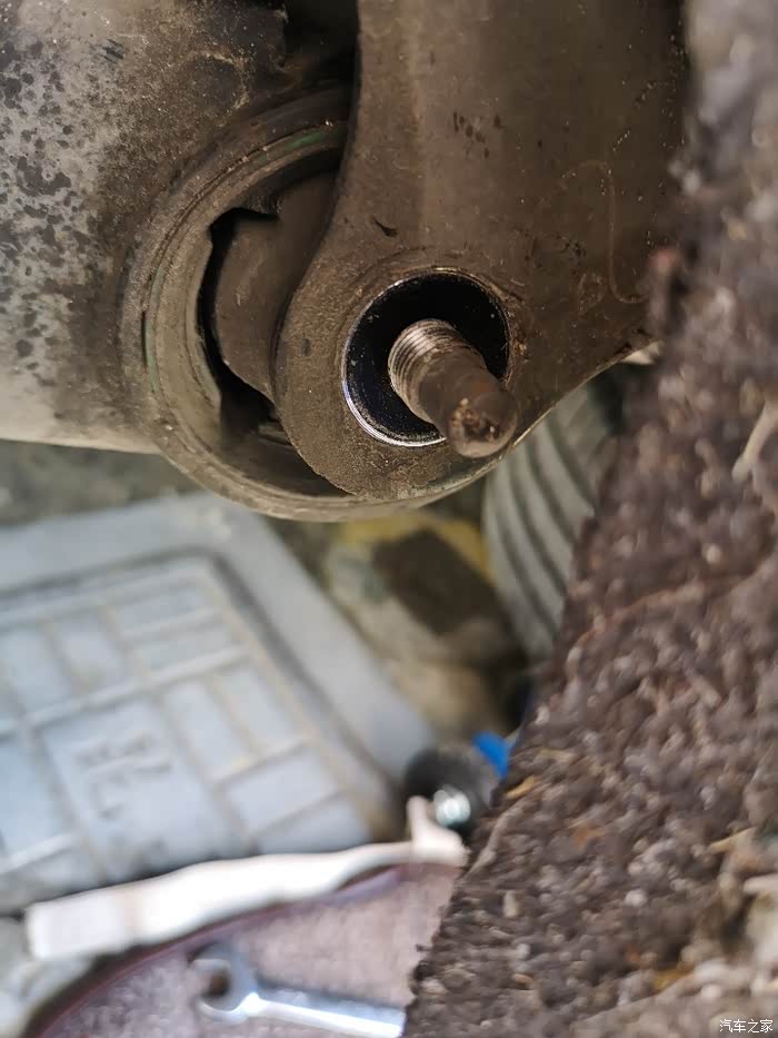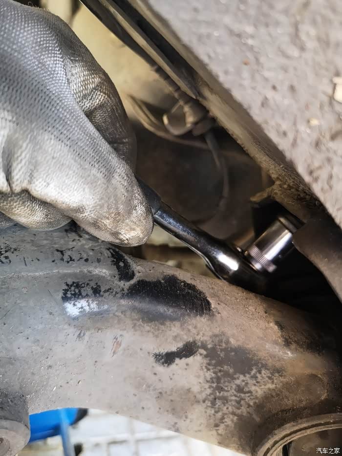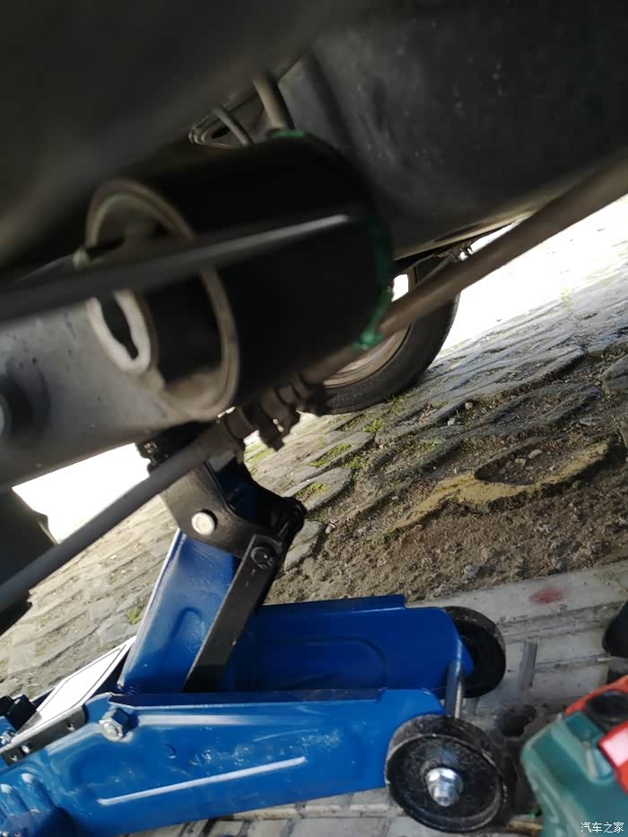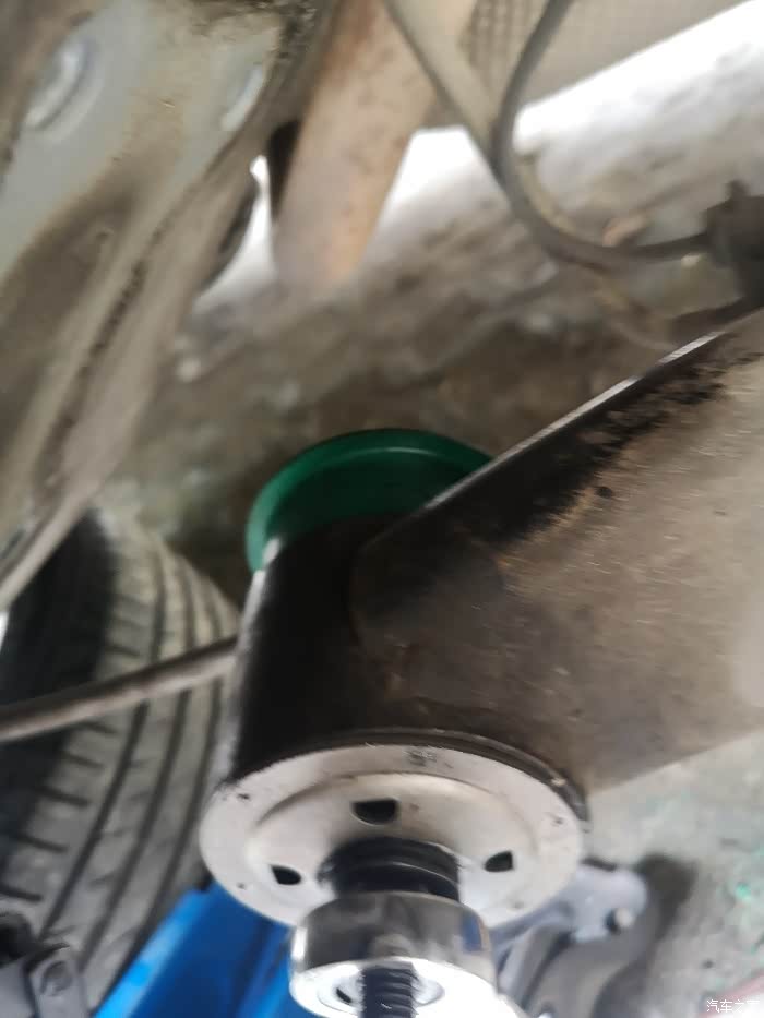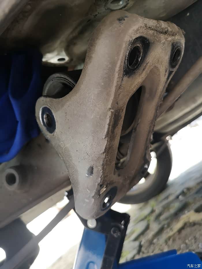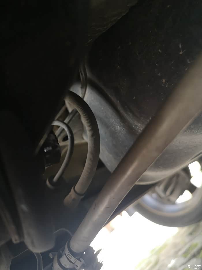 边的刹车管一定要注意了,后桥不能放得太下。不然会把刹车油管拉断,后桥一定要用千斤顶顶住。