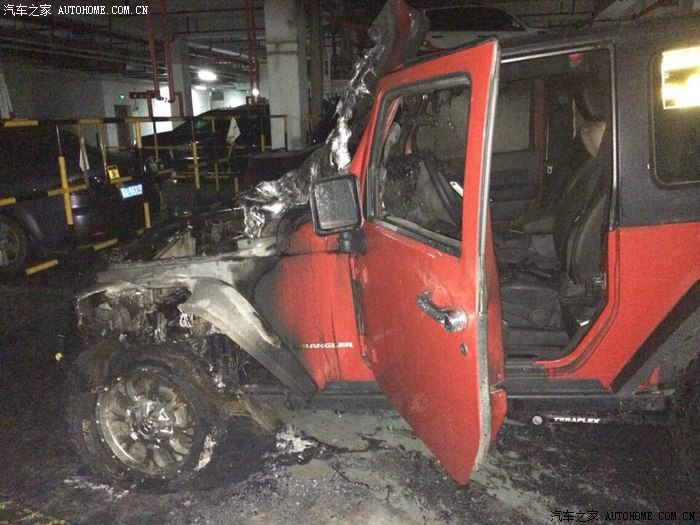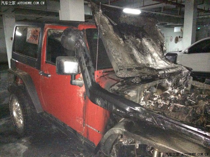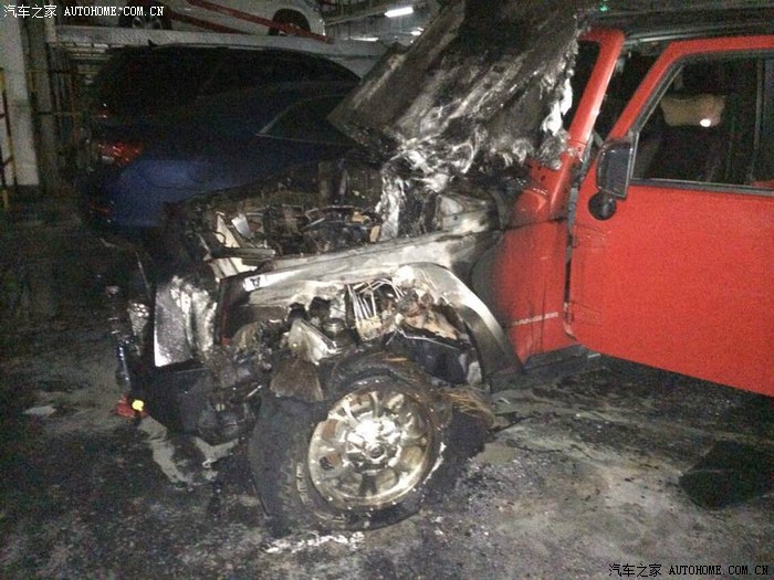 7月13日凌晨3点多,小区值班保安巡视车库,闻到有烧焦的味道,发现车辆起火,立即报火警,随后6辆消防车赶来灭火,车库烟 雾大,消防人员戴面具迅速展开灭火,3:35民警到达起火小区车库,根据对小区监控的调查,民警排除人为纵火,系自燃。待消防彻底将火扑灭后,发现是红色牧马人。民警电话联系了我,但因车库烟雾重及刺激性气味很重,要求不能立即查看。以防发生人员受伤。直至7:00后,我进入车库查看。 车子在地下车库冒烟自燃,当时我的车子里还有很多油,车库里也停了上百辆的高档车,幸好物业人员发现车库冒烟及时报了警,消防及时扑灭了火,不敢想象如果当时物业工作人员没有这么警醒,及时报警,会产生多么严重的后果。