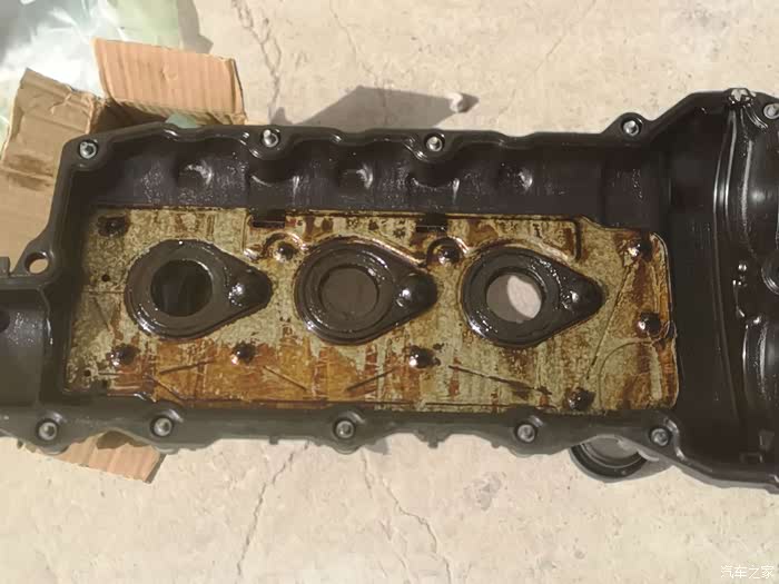 气门室盖中间三个圈圈就是骨架油封,已经硬化变质起不到密封作用了。