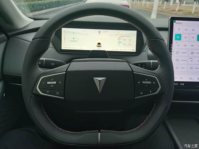 内饰也比较喜欢,十分简洁,几乎没有实体按键,双副式方向盘让驾驶很舒适,向日葵旋转大屏对语音交互中指令识别都比较精准,操作系统是有高通8155级芯片支持,使用起来比较流畅,未来几年不用担心车机卡顿,横向车机的设计,把位置留给空调出风口,贯穿式隐藏出风口,让车内充满了科技感,就像未来的汽车一样。