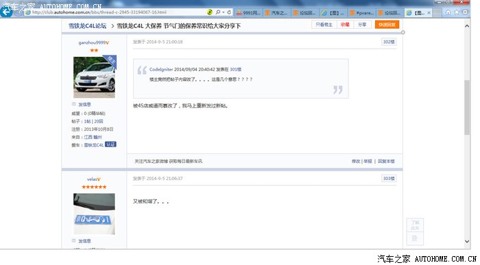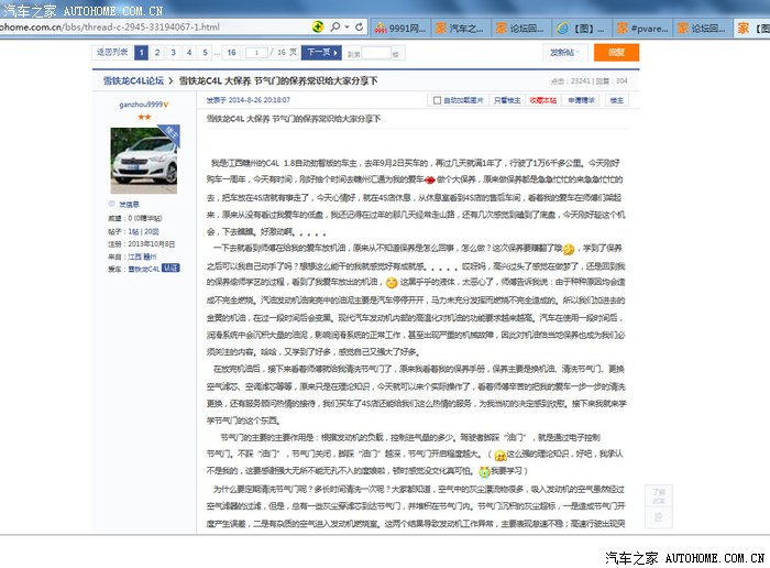 重新发帖的说明:之前发表了一篇《求关注:C4L 1.8差点要了我的命(附视频和照片)严重关切中》的贴,点击率超过了2万3千多,回帖超300条,但是9月2日由于赣州汇通4S店的威逼下在4S店老总的办公室里对原帖进行了篡改(连标题都改了,现在被改成了《雪铁龙C4L 大保养 节气门的保养常识给大家分享下》以自己人格担保:篡改后的帖子不是出自我的手,我也没有那么专业的技术水准写出那么专业帖子,并且现帖子内容和大家回帖的内容是牛头不对马嘴,明显的不是原帖。下有截图为真相)。现在重新梳理了事发整个过程,是想大家能通过我的经历吸取些经验和教训,遇有突发情况更好的处理得当,增加的照片是增强大家对这件事的感知认识,最终的结果是希望东风雪铁龙公司查明严重危及人身安全的原因。