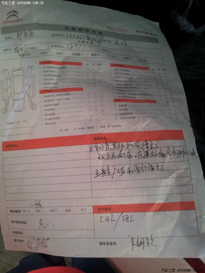 神马情况的东风雪铁龙C4L,你到底怎么了?? 赣州汇通4S店的师傅们,我的C4L到底怎么了,明明是东风雪铁龙,怎么就变成条雪铁虫了呢?真是想说爱你不容易!!!