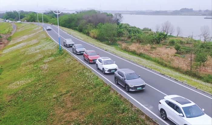 由十多辆车组成的车队,在基围边上齐刷刷地行驶,散发着青春的气息