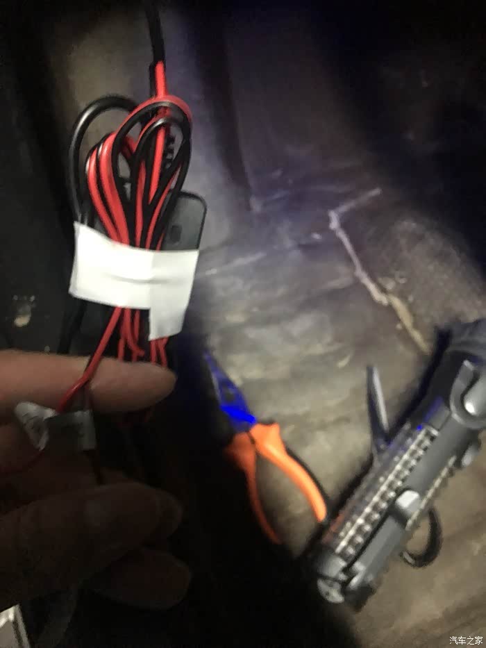 将取电器接到降压线的正极上面,红色的线……对应降压线上的ACC标签