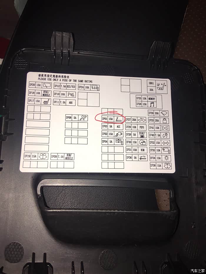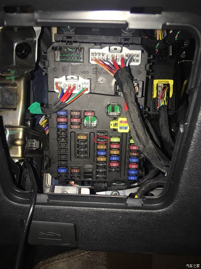 图中圈出的位置保险丝15#拔出来,我这是已经拔出来的照片