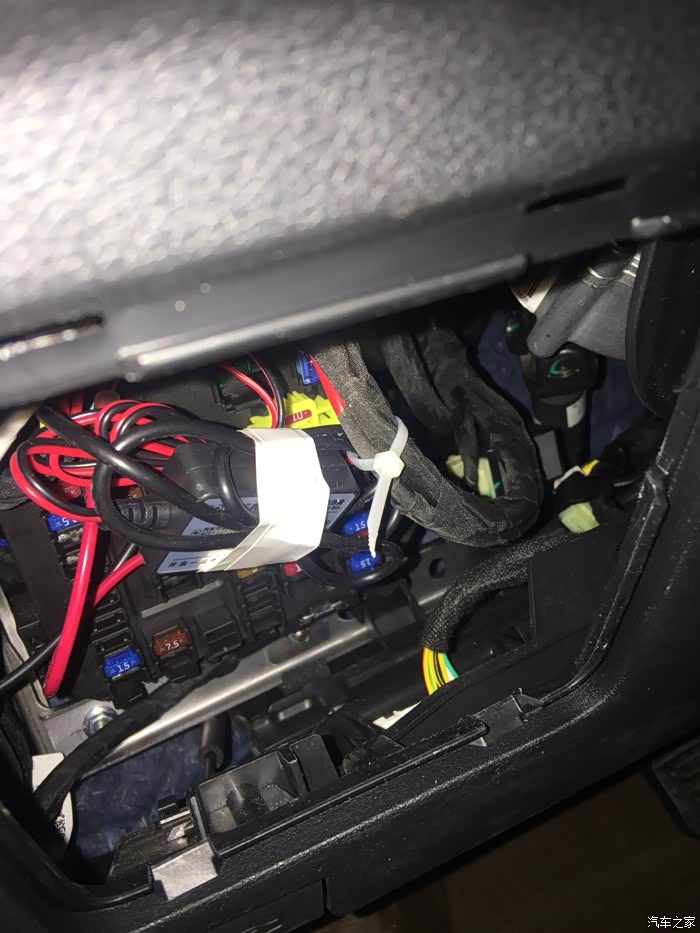 然后用扎带把多余的降压线捆扎在保险盒里面,防止晃动异响