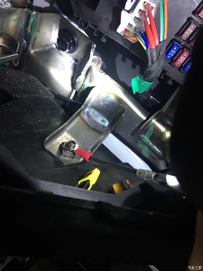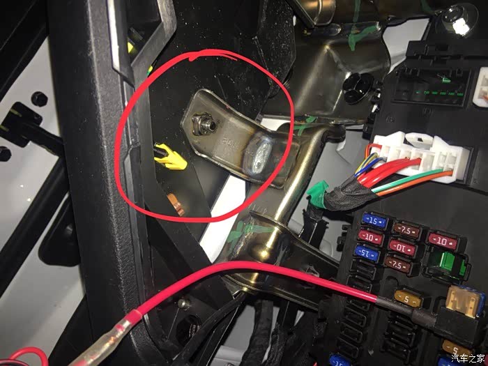 保险盒的左侧有个螺丝,螺母是焊在上面的,无法卸下来,只能在加个螺母,把负极接上