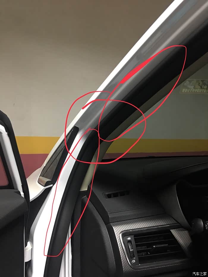 首先是拆主驾驶的橡胶条,如下图: