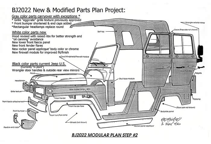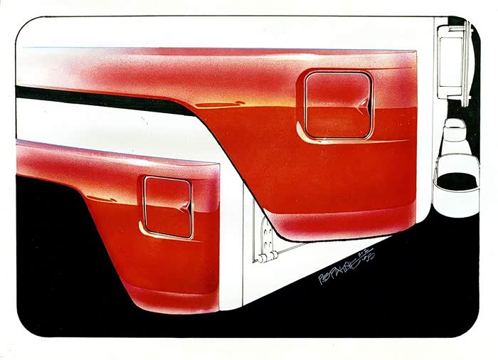 还是分享几张旧图片吧,来自20多年前的1995-1996年间,菲利普·E·佩恩为陆迪做的设计手稿。看看那个212小吉普最接近Jeep牧马人精髓的历史时刻,能否唤起BAW这个让大家看不清未来的设计队伍的精神!