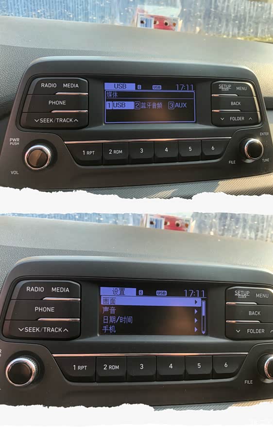 估计我的车机是很“古老”的了,当时买的全新悦动自动悦目版,车机就是自带的收音机。刚买来的时候出来就加装了大屏,我感觉不好用,我自己拆了下来又换回去了。