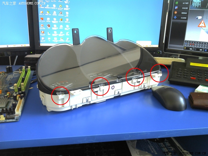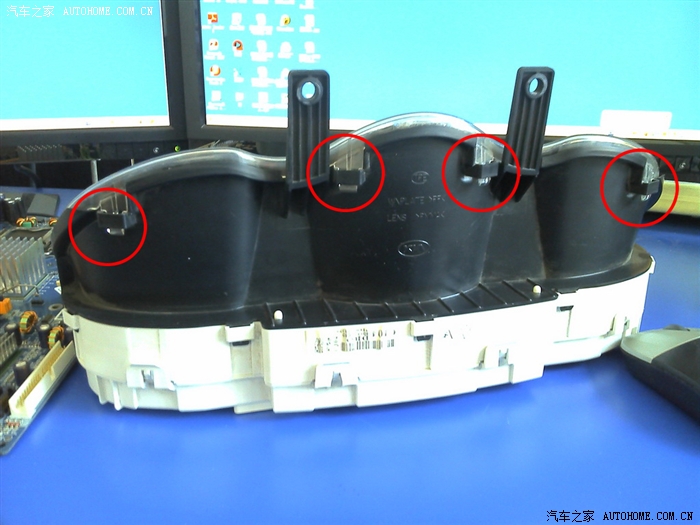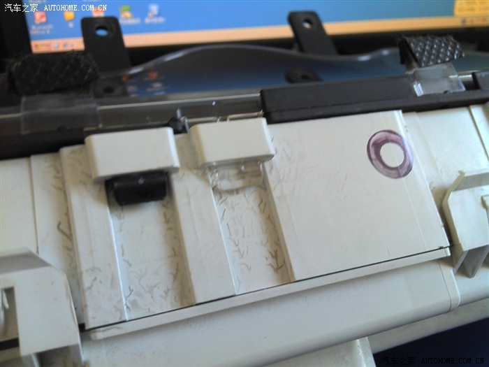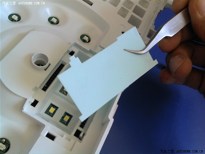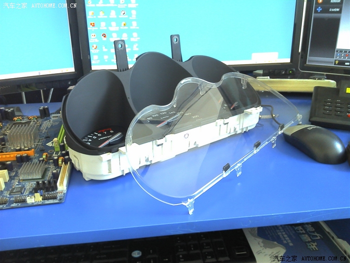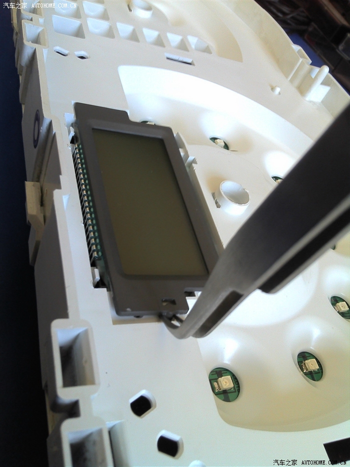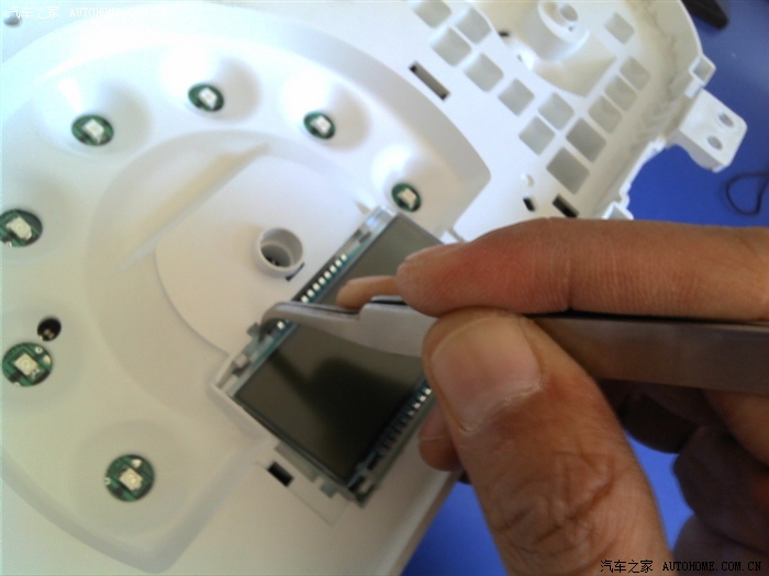 要拆仪表盘上的半圆形玻璃罩了。从上面开始用箭头镊子挑开。