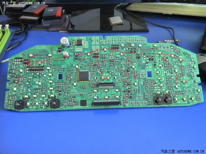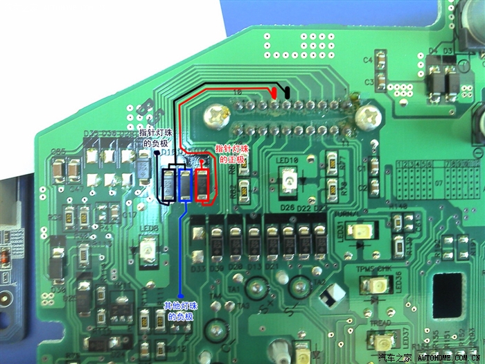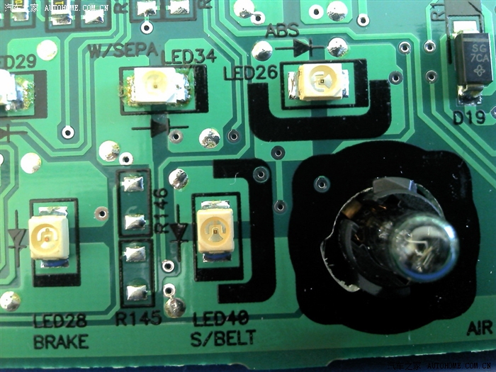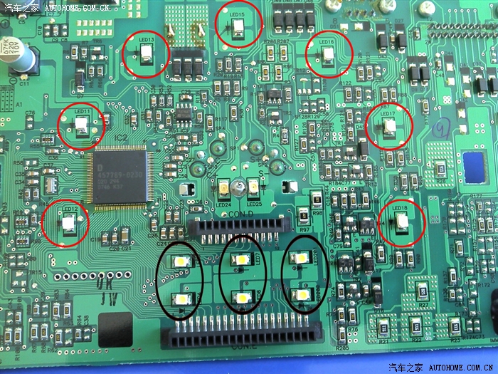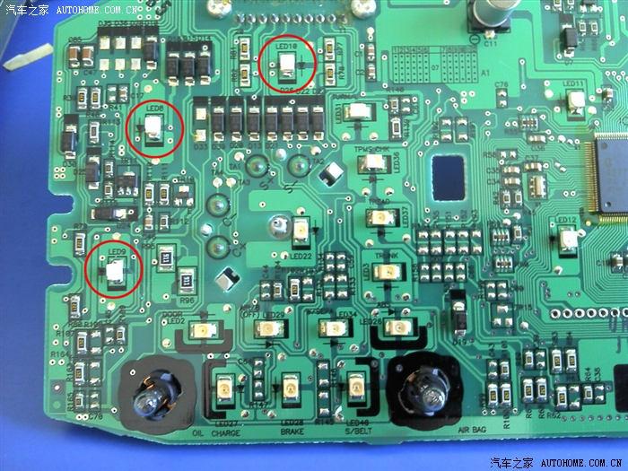 红圈里的是速度表的灯珠,黑圈的是行车电脑灯珠,这些是要换的。