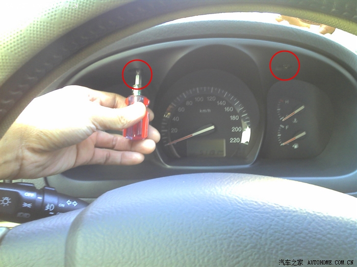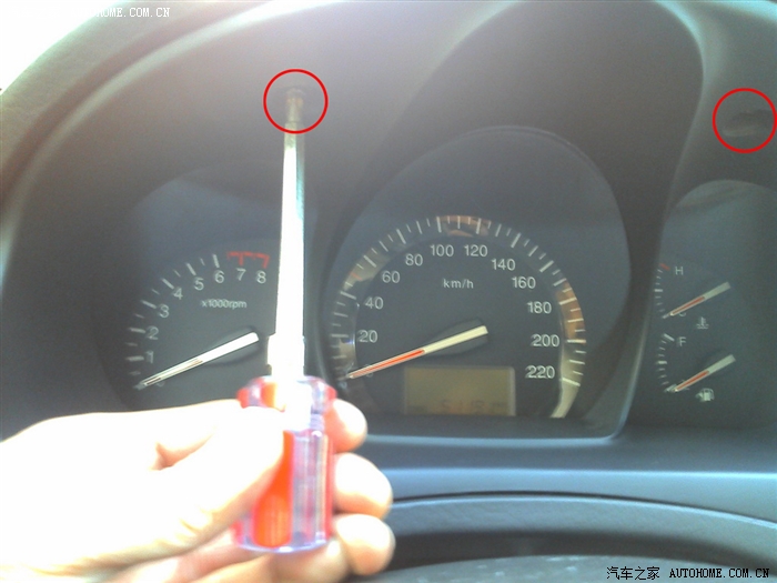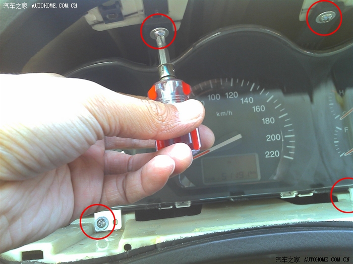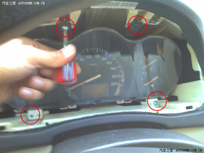 先拧开仪表盘上面的两颗螺丝
