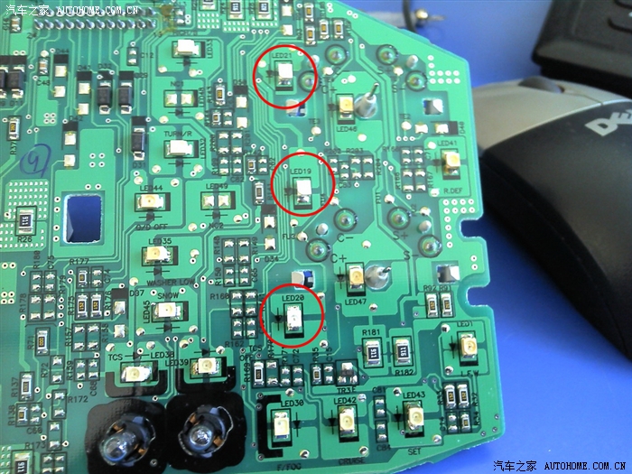 左边画圈的三个灯珠是转速表的灯珠,是要换的。