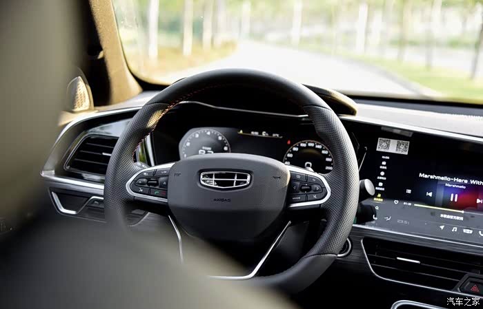 内饰方面也是可圈可点,星越的内饰可以说是又科技 又豪华了,现在可能是国产车最大的卖点。星越内饰做的特别到位,我记得第一次看到实车的时候,那个印象深刻,真的是让我眼前一亮。一打开驾驶室的门,处处都是软皮包裹,而且手感也很不错,座椅中间是翻皮包裹,很有档次感,整个内饰在用料这方面真的是绝对讲究啊。