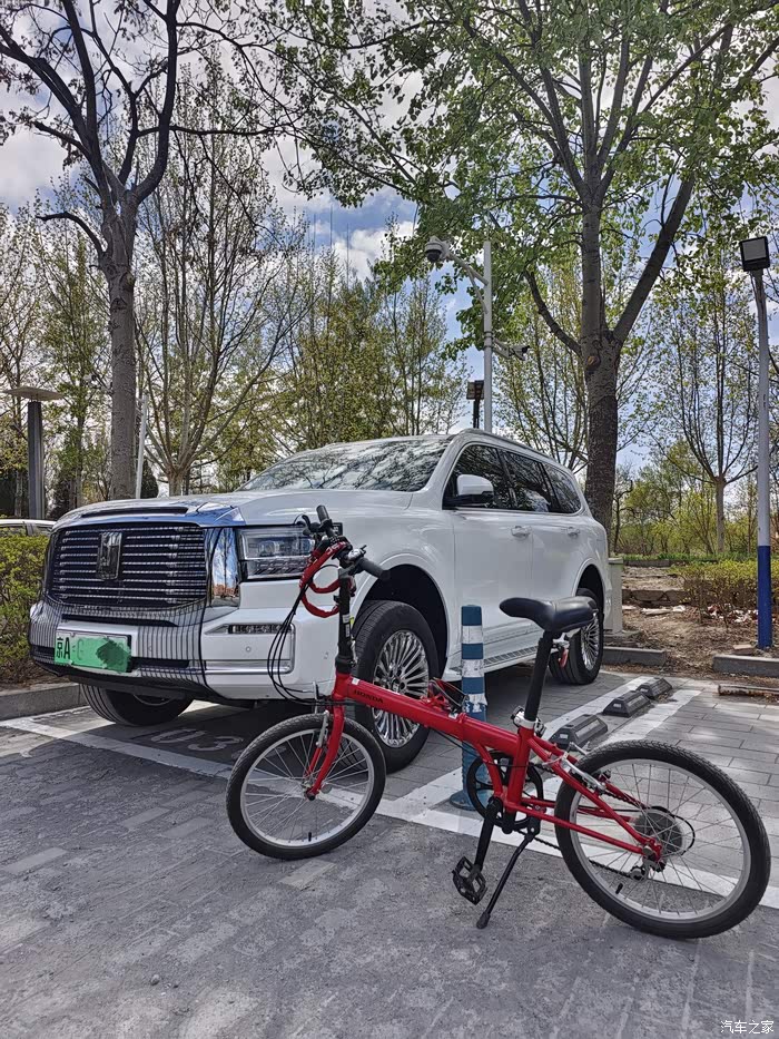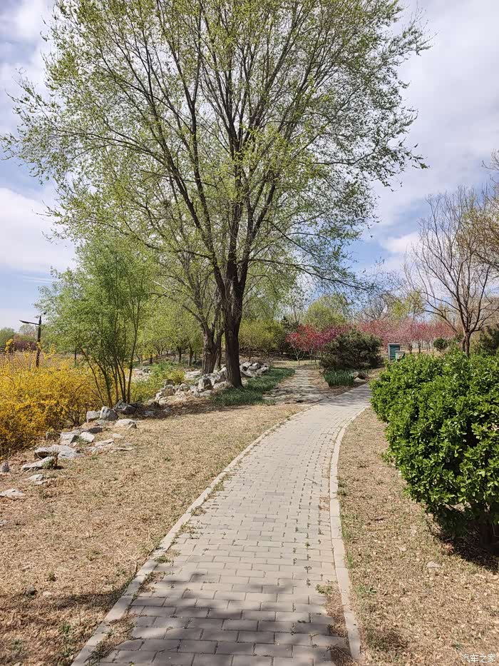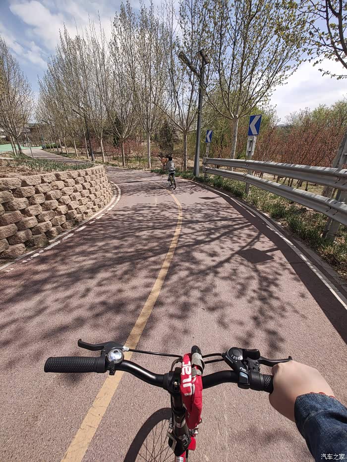 目的地凉水河森林公园。一路上车不算多,由于距离不算远又是刚充满的电,果断选择了纯电行驶,这车纯电行驶感静谧性太好了,闺女在后座喊着“坦克坦克,播放周深的歌”,我跟孩子他娘聊起上次来这儿遇到改造找停车位那叫一个费劲,今年停车区扩建了,离骑行区域入口还近,到了就有车位心里挺舒坦的。