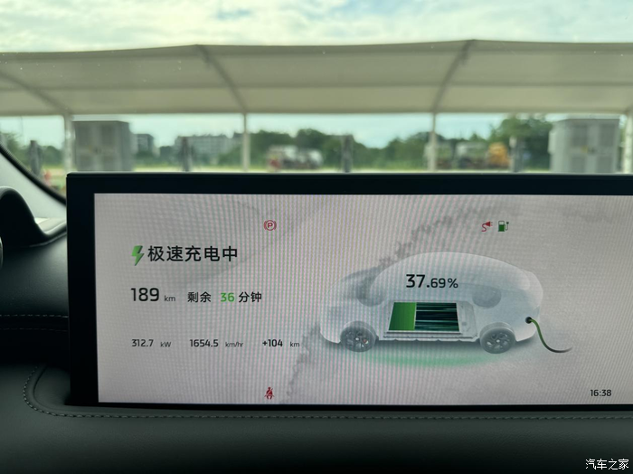 这个桩子不是最新型号的,虽说支持800V,但是功率上限只有320,L6一插上去,速度直冲上限,半分钟内涨到了312,最快的那阶段十分钟充了四十度,涛涛真没吹牛,5分钟200公里问题不大,就是这桩子蛮奇葩的,充了一会后它大概是因为会过热?功率上限还一点点往下降的,纯纯限制L6发挥了,下次试试看能不能找到个400功率的装,试试看20分钟一箱电。