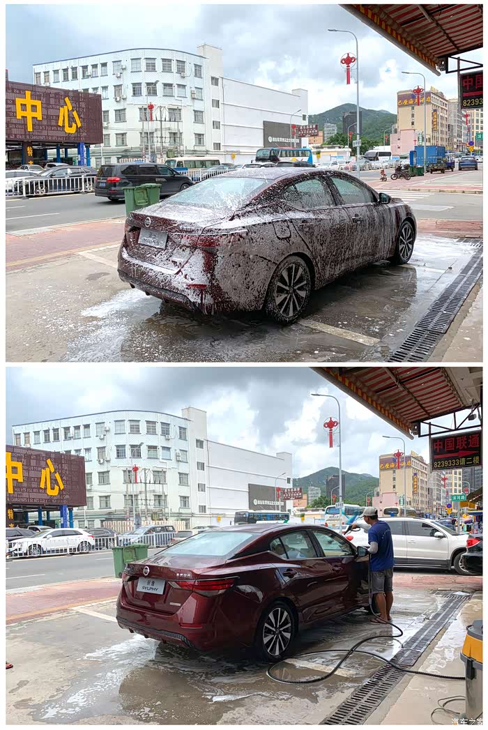 并且因为昨天的泥泞路面,我选择在路边就近停下,为轩逸14代冲洗干净先把。