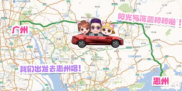 从广州出发到惠东巽寮湾路程两个半小时,抵达后要去到风车山,还有一个多小时的县道,因为去往风车山的县道正在大修路。