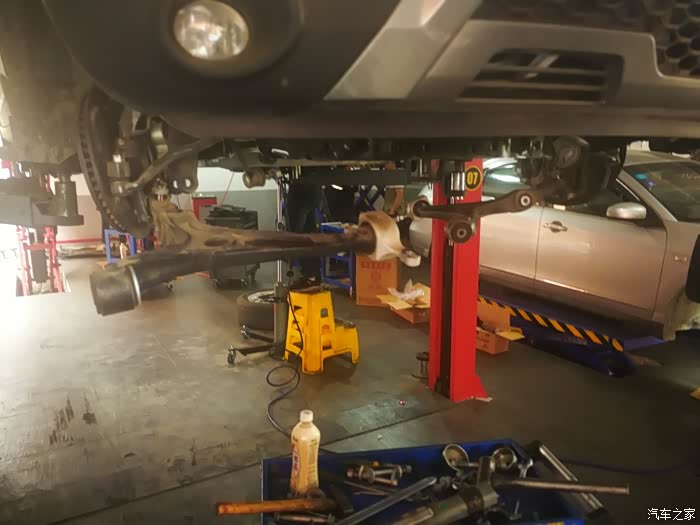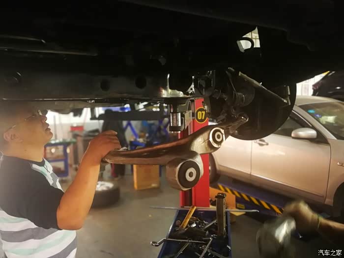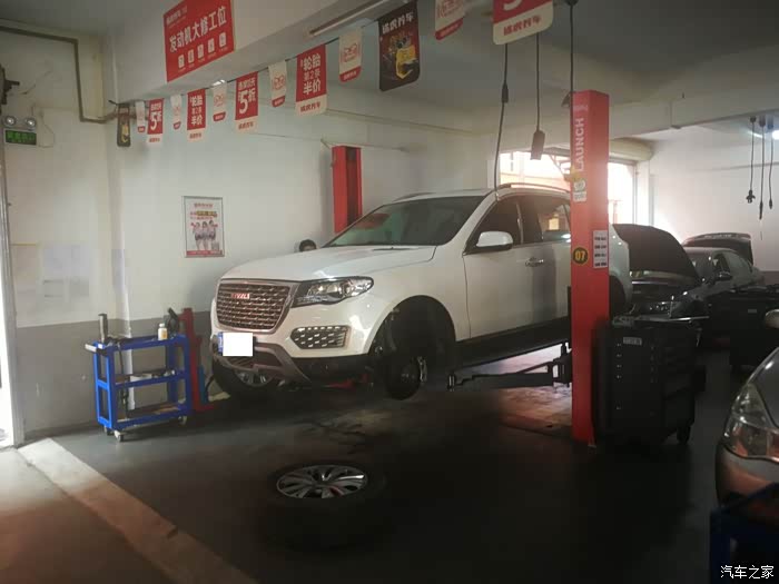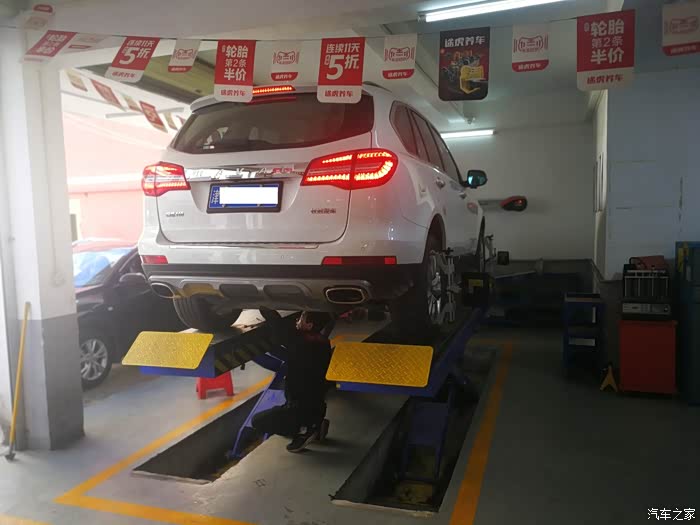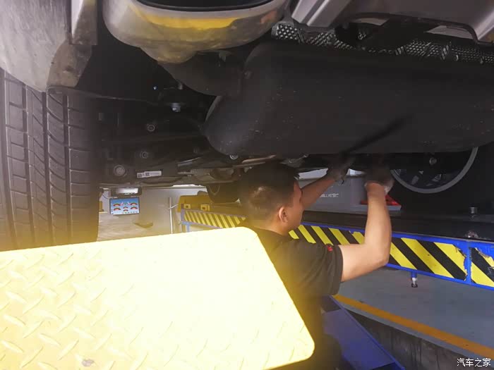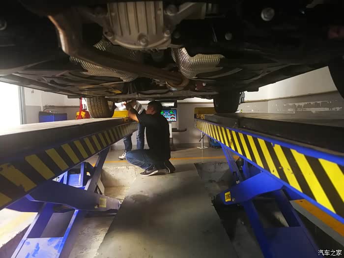 途虎店的师傅们把我的车升起来,开始检测。