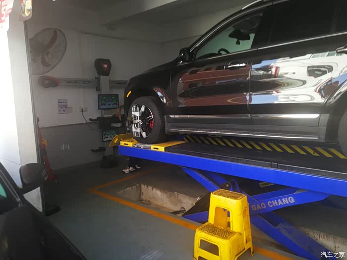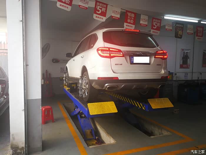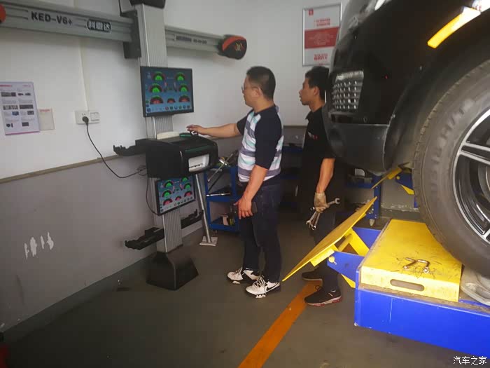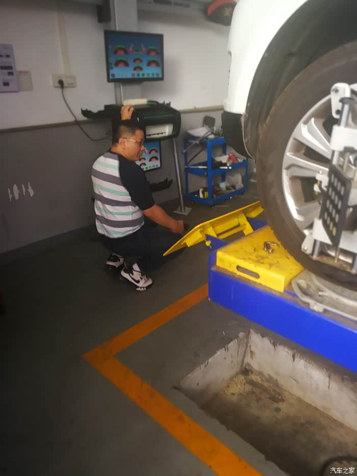 待我们回到途虎店,我的车子已经换件完毕,我的车已经换位了正在准备做四轮定位,我们回来的正是时候。