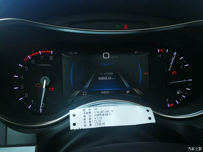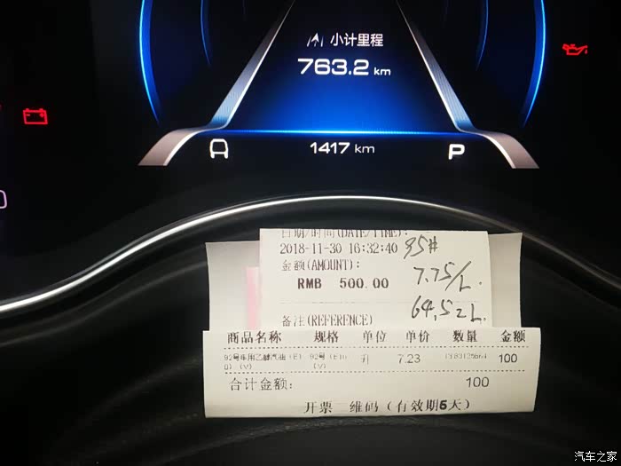 第7箱油:95#,7.33元/升,72.31升,530元,667公里,10.84升/百公里。