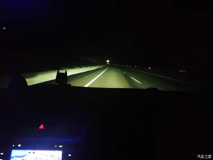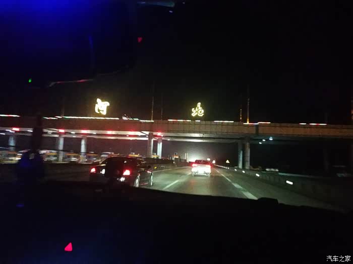 从惠州机场到高速入口之间有一段县道,正好检测一下H8的灯光,这个是近光灯效果。看仪表盘那的指示灯,远光灯没有亮。