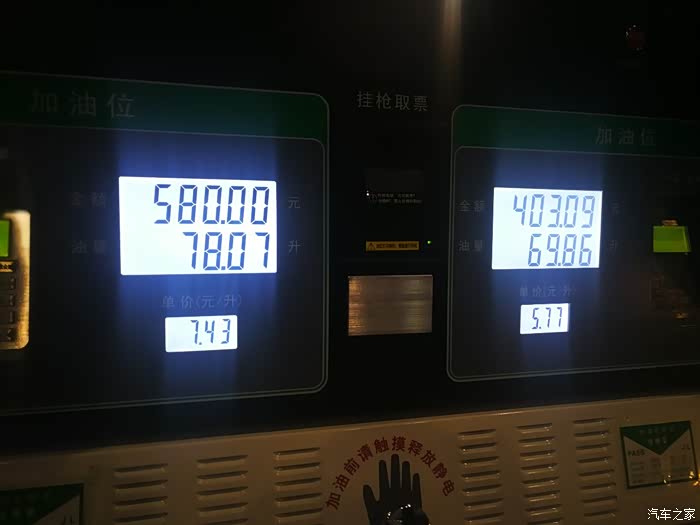 第4箱油:95#,7.43元/升,70.66升,525元,676公里,10.45升/百公里。