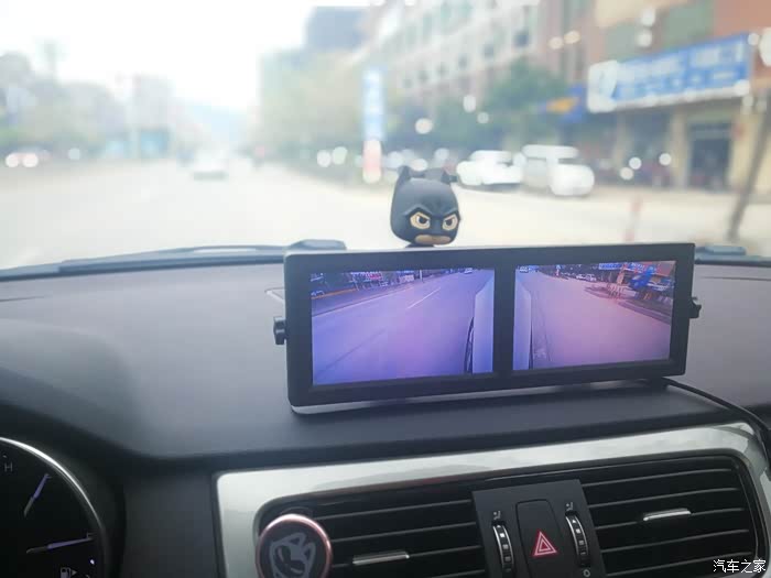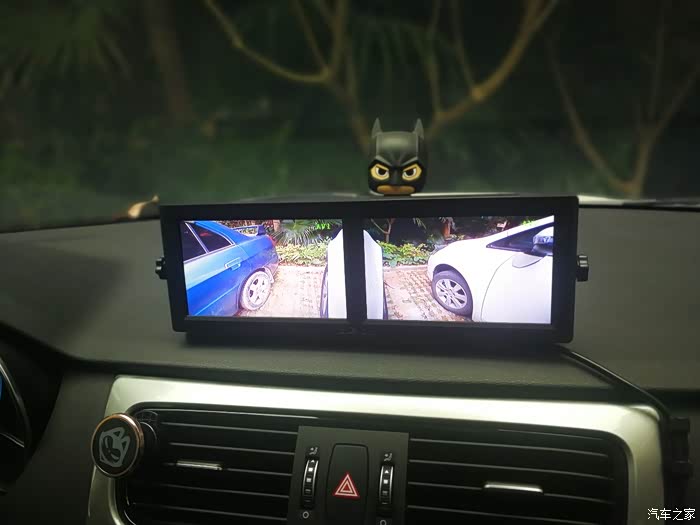 这是装好摄像头之后的效果,查看车子的两边很方便,仅仅几百块钱,花得真值,唯一的缺憾就是这个屏幕挡住了小蝙蝠侠!