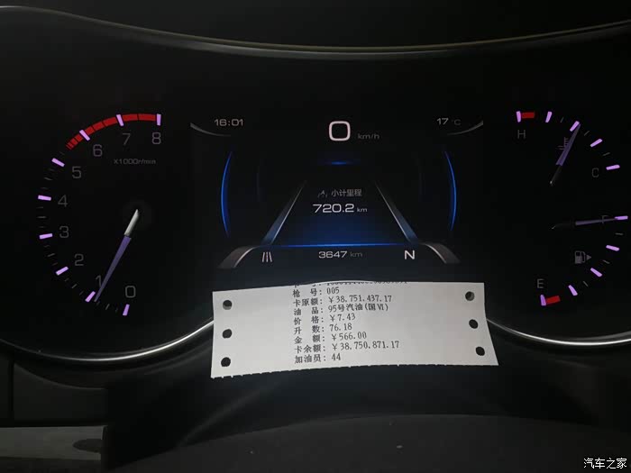 第5箱油:95#,7.43元/升,76.18升,566元,720公里,10.58升/百公里。