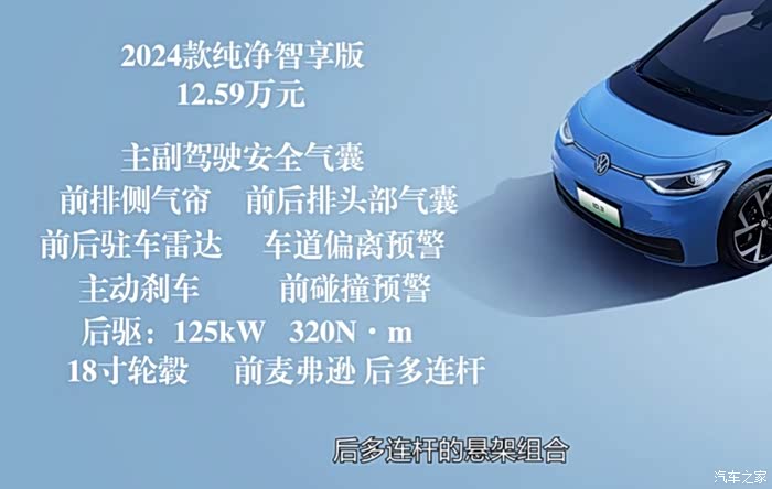 大众其实在新能源领域啊,有着不错的市场表现,比如说上汽大众去年在新能源方面的销量就超3万台,那这个数据呢,在合资纯电领域的话也是遥遥领先的,ID3就是绝对的功臣了啊,那新年一刚开始呢,上汽大众也为这位功臣带来了一个全新的款式啊,2024款一共是有3个配置。那其实新款这呢,也延续了这样的一个态势,可见上汽大众给到消费者的诚意还是非常的足了,那么在在售的3款24款的车型里边啊,又是哪个配置最值得购买呢?