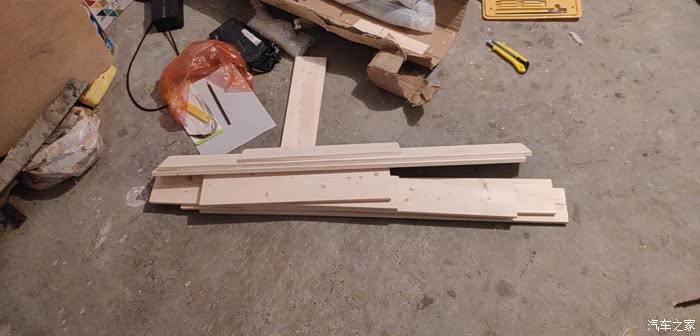 话不多说赶紧开干,木头刚拿到手的时候感觉还挺好的,切割的尺寸和我报的数据也挺准确。但是,当我拿上车才发现明锐后备箱最下面有两个凸起是碍事的,木板买长了!于是就赶紧去找来了锯子,重新测量切割,一直奋战到晚上11点,终于让我把框架给做出来了。放车上一试,还真挺像那么回事!
