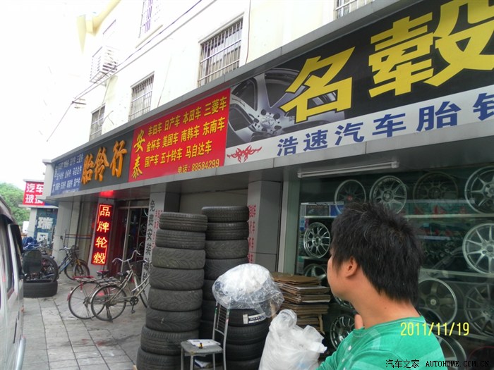 ,电话再联系淘宝的人,他说价格是这样了,可以送些防资螺丝,再送改装气嘴,想想好吧!既然来了就不差那点钱了,也不想空跑一回,又回到原先的店,要老板再拿出来套上去看下抛边够不够出(我原车上这个就是抛边不够出才想换),但老板说拿回仓库了,麻烦,在次追问,原来是从其它店借来的,只有交钱才能拿了