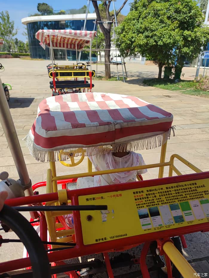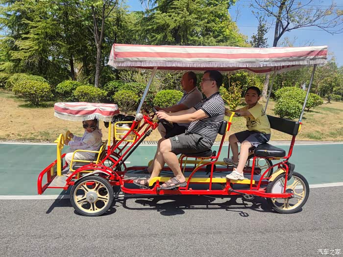 便租了一辆双排自行车,一边骑车欣赏沿途风景一边停下来拍照。