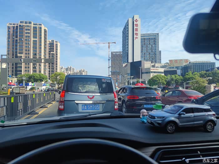跟在一台五菱宏光的后面,倒也是不怕会浪费下一个绿灯,毕竟开五菱宏光的都是勇者,哈哈。