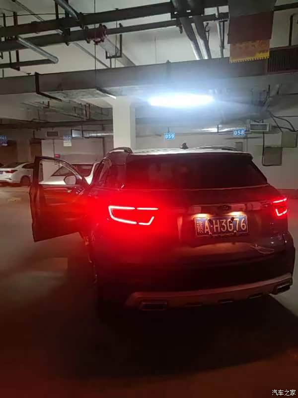 在小区地下车库,昏暗的灯光下,领界的尾灯看着有点霸气,就好像瞪着眼睛的老虎,时刻准备着出发。